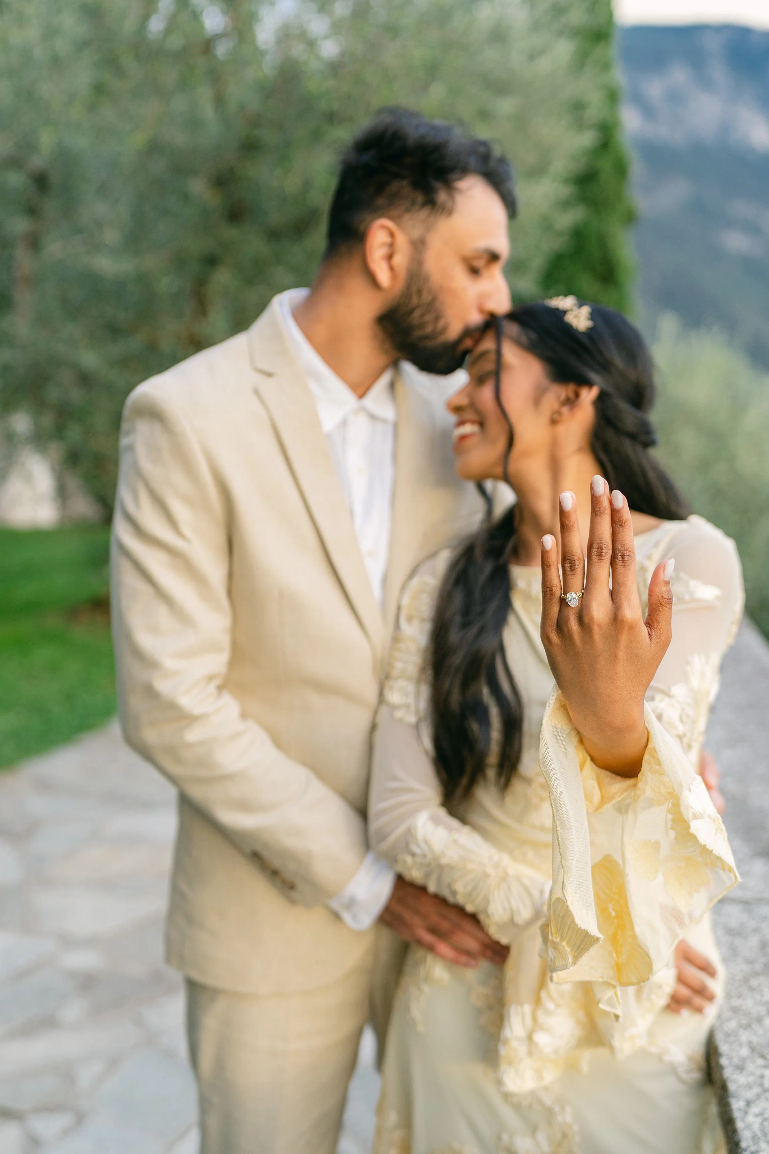 On our Europe Trip when Sachin booked Lake Como of all places and then said we are going to wine tasting. Of all his strengths keeping secret has never been one of them. So I knew something special was coming. I remembered to wear the pretty dress I packed “Just in case” not knowing how much that movement would change m life. In true Sachin style he let me to the rooftop of a breathtaking castle, overlooking Lake Como and there surrounded by beauty that felt almost unreal, he asked me to spend foreever with him. Everything about it was pure romance, the soft song of violin playing one of my Favorite Taylor Swift songs, the wine and the most beautiful heartfelt speech he had memorised. So on a quite ordinary Monday night, in the most extraordinary places in Italy, I said YES to marrying the love of my life and in that moment, I knew my forever had begun